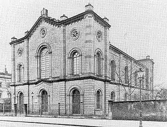 - ↑ (de): Journal Allgemeinen Zeitung des Judentums du 7 août 1914, commémorant les 75 ans de la synagogue.