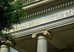Les inscriptions gravées sur l'entablement sont constituées d'un chronogramme (5622) et d'un passage du chapitre 4 du deutéronome écrit en hébreu :