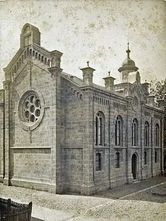 Dans la deuxième moitié du XIXe siècle, une salle de prière est d'abord aménagée. Selon le rapport de 1878 du magazine Der Israelit, il s'agit d'une « salle louée, mais aménagée de manière fonctionnelle[4] ».