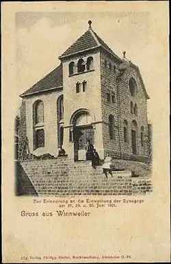 La première pierre de la nouvelle synagogue est posée en août 1900. Elle est inaugurée solennellement le et , par une grande fête à laquelle participe toute la population de Winnweiler :