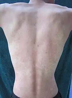 - La rosacée, connue aussi sous le nom de « couperose », est une affection chronique de la peau du visage dans laquelle les capillaires sont excessivement réactifs, entraînant des rougeurs dues aux bouffées vasomotrices ou aux télangiectasies. La rosacée est attribuée à tort à l'alcoolisme en raison de son apparence similaire à la rougeur temporaire du visage qui accompagne souvent l'ingestion d'alcool.