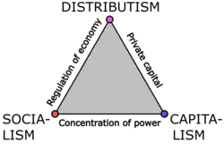 Un système économique est composé par des relations entre ses acteurs. Pierre-Joseph Proudhon note ainsi en 1850 que le système économique capitaliste d'Europe de l'Ouest est dominé par la figure du travailleur et celle du patron[5]. Les relations entre les agents sont modulées par les politiques publiques, qui peuvent par exemple décider d'un niveau de centralisation plus ou moins élevé de l'activité économique[6].