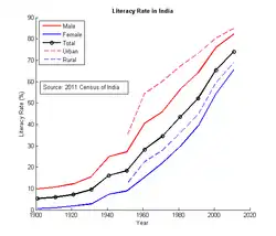 - ↑ « Census 2011, Chapter 6 (State of Literacy) », Government of India (consulté le )