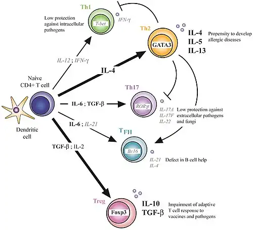 - ↑ (en) Nicola Harris et William C. Gause, B cell function in the immune response to helminths, Trends Immunol. Février 2011 ; 32(2): 80–88.