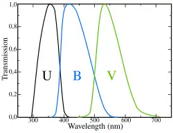 Le système photométrique UBV, appelé également système de Johnson (ou système de Johnson-Morgan), est un système photométrique à large bande pour classer les étoiles selon leurs couleurs. C'est le premier système photométrique photoélectrique standardisé. Les lettres U, B et V correspondent aux magnitudes ultraviolette, bleue et visible (ou verte), qui sont mesurées pour une étoile afin de la classer dans le système UBV[1]. Le choix des couleurs à l'extrémité bleue du spectre est lié au biais que la pellicule photographique présente pour ces couleurs. Il fut introduit dans les années 1950 par les astronomes américains Harold Lester Johnson et William Wilson Morgan.