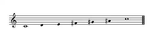 La gamme par tons — parfois improprement appelée gamme chinoise —, est une gamme hexatonique dont les six degrés sont séparés par des tons : elle a été très utilisée par Debussy.