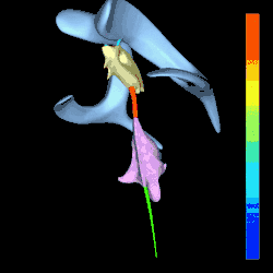 Vue tridimensionnelle animée du quatrième ventricule cérébral (en rouge).