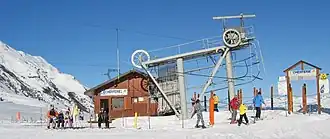 Gare de départ d'un téléski débrayable à Méribel, Savoie, France