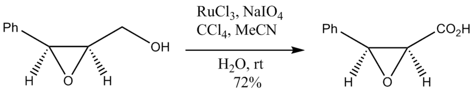 L'oxydation d'alcools époxy conduit également à des acides carboxyliques sans altération du cycle époxy :