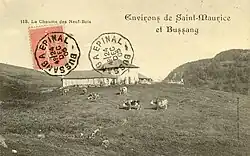 La ferme de la chaume des Neufs-Bois à l'abandon était une marcairie typique entourée de son troupeau de vaches de race vosgienne[6].