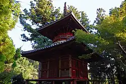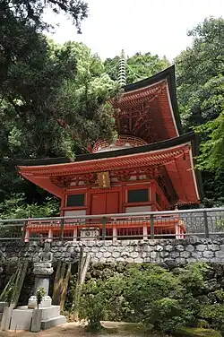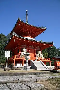 ![]() | Tahōtō de Kongō Sanmai-in (金剛三昧院多宝塔)[81],[82] | 1223 | Kōya | Préfecture de Wakayama | 3 ken, toit en cyprès du Japon ; à l'intérieur se trouvent des statues en bois de l'époque de Kamakura représentant les cinq Dhyani Bouddhas assis | Trésor national |