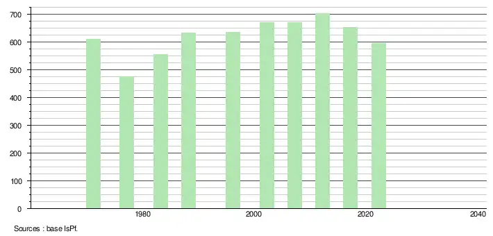 En 2017, la commune comptait 653 habitants[Note 1], en diminution de 7,11 % par rapport à 2012