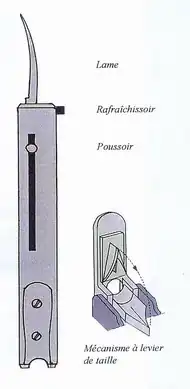 Plusieurs sortes de taille-plumes ont été utilisés : couteaux, canivets et taille-plumes mécaniques.