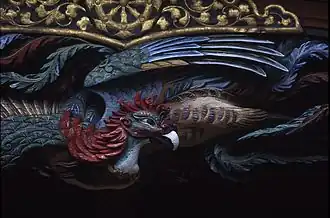La décoration du fenghuang sur le linteau d'entrée du hōan-dō.