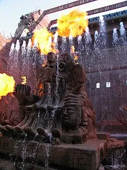 Construit dans le quartier mexicain, l'histoire qui entoure l'attraction raconte qu'un certain Pedro González, vigneron de San Miguel Del Monte fait agrandir sa cave à vin et en creusant le mont Tláloc, ils découvrent une étrange pièce remplies de portes en bois très anciennes. Pablo, l'employé de senior Pedro effrayé couru hors de la pièce connaissant la terrible légende de la porte de Tlaloc, menant au monde parallèle du dieu aztèque de la pluie et des éclairs. Attendant sur la place du village, ce dernier vit le bâtiment bouger dans tous les sens, accompagné d'un nuage de poussière et d'un rire effrayant résonnant dans l'air. Un serpent à plumes apparu alors fixa Pablo et se changea finalement en pierre, laissant le champ libre au pauvre homme qui courant au secours de son employeur. Une des portes en bois était ouverte, une fois franchit, Pablo se retrouva au cœur d'un temple aztèque. Alerté par le bruit, Meguelito, le fils de Pedro González rejoint Pablo. Tous deux découvrirent une sorte de gondole au milieu du temple et s'y installèrent, comme possédés. La structure commença à nouveau à bouger faisant changer la terre en air, l'eau en terre et le haut en bas.