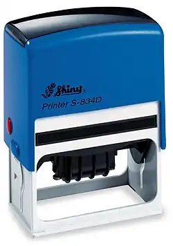 Le terme « tampon encreur » désigne à la fois le coussinet imprégné d'encre, la boîte qui contient le coussinet puis par extension l'instrument qui sert à apposer une marque sur un document, voire la marque imprimée au moyen du tampon[1]. Le tampon peut être manuel ou automatique.