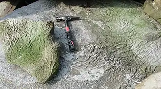 - ↑ Porada H., Ghergut J. et Bouougri El H., « Kinneyia-Type Wrinkle Structures—Critical Review And Model Of Formation. », PALAIOS, vol. 23, no 2, , p. 65–77 (DOI 10.2110/palo.2006.p06-095r, Bibcode 2008Palai..23...65P)