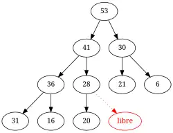 - C'est un arbre binaire complet : tous les niveaux sauf le dernier doivent être totalement remplis et si le dernier ne l'est pas totalement, alors il doit être rempli de gauche à droite.