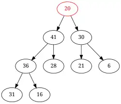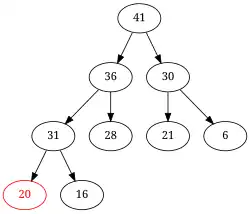 On compare 20 et son fils maximum, qui est 41. Comme 41 > 20, on échange 20 et 41.