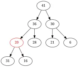 On compare 20 et son fils maximum, qui est 36. Comme 36 > 20, on échange 20 et 36.