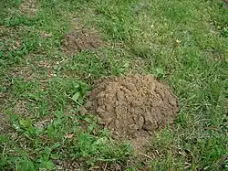 En creusant, la taupe arrive à compacter jusqu’aux deux tiers de la terre afin de consolider ses galeries horizontales, le reste étant rejeté par l'intermédiaire d'une cheminée verticale sous forme de taupinières qui peuvent donner un aspect disgracieux aux pelouses. Elles indiquent la présence de l'animal. À contrario, l'absence de taupinière ne prouve pas l'absence de taupes.