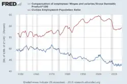 Le taux d'emploi est la proportion de personnes disposant d'un emploi parmi celles en âge de travailler (15 à 64 ans)[1]. Le taux d'emploi[2] reflète la capacité d'une économie à utiliser ses ressources en main-d'œuvre.