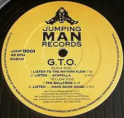 Label de 1991 "Jumping Man Records" enregistrement de "Listen To The Rhythm Flow" interprété par GTO