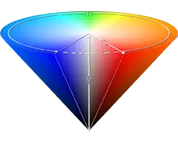 Alvy Ray Smith a défini le modèle TSV en 1978. C'est une transformation non linéaire simple de l'espace de couleur RVB des ordinateurs, lui même non linéaire et en principe indexé sur l'espace colorimétrique linéaire CIE XYZ. Elle peut être utilisée en progression colorique[Quoi ?].