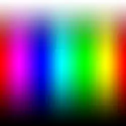 La définition des couleurs par teinte, saturation, luminosité peut transformer considérablement le calcul d'un dégradé de couleur. Une interpolation linéaire des valeurs rouge, vert, bleu entre deux couleurs éloignées donne des résultats radicalement différents d'une interpolation des valeurs (t,s,l). Des logiciels d'édition d'image proposent les deux options[21].