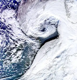 Elle se creuse tout d'abord en Écosse avant de se diriger vers la Scandinavie. Les vents touchent également le Royaume-Uni ainsi que le nord de la France, la Belgique et les Pays-Bas. La tempête a fait 2 victimes en Angleterre[4] et elle est suivie de la tempête Andrea.