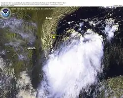 La dépression circule assez lentement en périphérie d'un anticyclone d'altitude au-dessus des Rocheuses et du Texas. Elle circule ainsi dans un flux de nord ouest, qui la dirige vers la côte du Mexique. Ce mouvement l'amènera à toucher terre le à 6 h UTC, devenue entre-temps tempête tropicale, 36 h après sa formation.