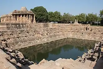 - Rama Kunda ou Surya Kunda (littéralement « bassin de Rāma » ou « bassin de Sūrya ») : grand réservoir d'eau (bâoli) rectangulaire, de 50 par 20 mètres de côté, il était utilisé par les dévots pour effectuer les ablutions rituelles avec les prières. 108 sanctuaires miniatures sont sculptés à l'extérieur et à l'intérieur du bassin, 108 est un nombre considéré comme de bon augure par les hindous. Un grand torana, dont il ne reste aujourd'hui que deux piliers monumentaux, ouvrait sur le Sabha Mandapa.