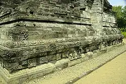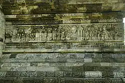 Le pourtour du temple est décoré de 14 panneaux de bas-reliefs : 3 sur la façade nord, 8 sur la façade ouest et 3 sur la façade sud, qui racontent l'histoire du Sudamala. Celle-ci raconte la purification de la déesse Durga, épouse de Shiva, qui est transformée d'un monstre malveillant, Uma, en une forme bienveillante par Sahadeva, l'un des jumeaux et le plus jeunes des frères Pandava dans l'épopée indienne du Mahābhārata.