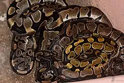 Le temple abrite plusieurs dizaines – voire une centaine[2] – de pythons royaux (Python regius) qui ne présentent pas de danger pour l'homme. La femelle (dangbé drè) est plus grosse que le mâle (dangbé kpohoun). Leur longueur ne dépasse pas 1,50 mètre[16].