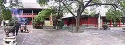 Construite en 1443, reconstruite en 1456 et restaurée en 1662, elle abrite la statue de l’officier divin (lingguan) Wang, protecteur qui repousse les mauvaises influences à l’extérieur du temple[9],[10]