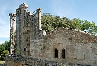 Le mur oriental du temple avec, à droite, la portion de mur réutilisée par la chapelle romane Saint-Cézaire.