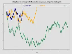 Temps d'impact et temps d'arrêt de trois échantillons de mouvement brownien.
