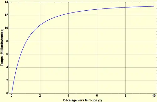 Le temps de regard vers le passé est donné par l'expression, en fonction du décalage vers le rouge [1] :