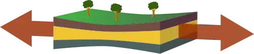 La tension géologique est également présente dans les régions tectoniques situées aux limites divergentes de plaque (en). Dans ces zones, une chambre magmatique se forme sous la croûte océanique, ce qui entraîne une expansion du fond marin et la création d'une nouvelle croûte océanique[3]. Une partie de la force qui écarte les deux plaques est due à la force de poussée exercée par les dorsales (en) de la chambre magmatique[4]. La tension, cependant, représente la plupart des tractions "dans des directions opposées" sur les plaques. À mesure que la croûte océanique qui se sépare se refroidit avec le temps, elle devient plus dense et s'enfonce de plus en plus loin de l'axe de la dorsale. Le refroidissement et l'affaissement de la croûte océanique provoquent une contrainte de traction qui contribue également à séparer les plaques au niveau de l'axe de la crête.[réf. nécessaire]
