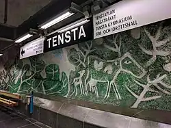 Établie en souterrain, la station Tensta de la branche Hjulsta de la ligne Bleue, est située entre la station terminus ouest Hjulsta et la station Rinkeby, en direction du terminus est : Kungsträdgården[1].