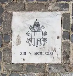 - ↑ « 25e anniversaire de l’attentat du 13 mai 1981 : Plaque commémorative », sur Catholique.org, (consulté le )