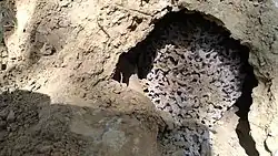 - ↑ Alvéoles où sont entreposées par les ouvriers de menus fragments végétaux qui forment des tas de sciure imbibés de salive.