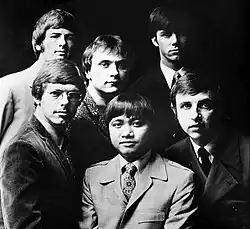 Terry Kirkman (en bas à droite) avec The Association en 1968.