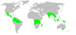 Les espèces de cette famille se rencontrent dans les zones tropicales d'Asie, d'Océanie, d'Afrique et d'Amérique[1].