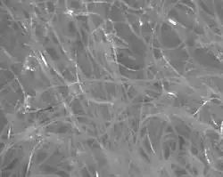 - Fibres minérales, par exemple fibres de verre[2], fibre céramique et d'amiante (rarement utilisé).