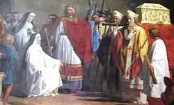 - ↑ Wilfried Hartmann (de) : Kaiser Karl der Große (768/800-814). In: Gerhard Hartmann, Karl Schnith (Hrsg.): Die Kaiser. 1200 Jahre europäische Geschichte. Marix Verlag Wiesbaden 2006 (ISBN 3-86539-074-9), S. 42 f.