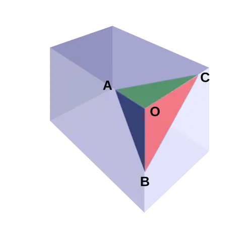 Notons a, b, c les longueurs respectives des arêtes OA, OB, OC.