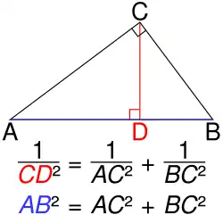 Le théorème de Pythagore inversé concerne la hauteur DC d'un triangle ABC rectangle en C. Il spécifie que: