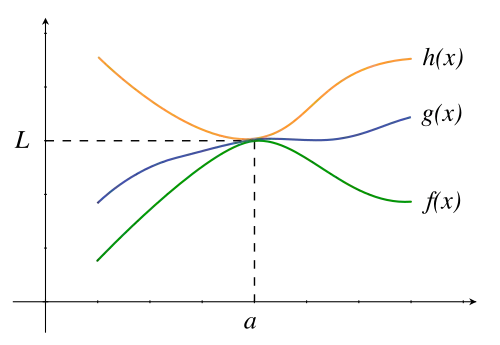 En analyse, le théorème des gendarmes[1] (également appelé théorème de l'étau[2], théorème d'encadrement[3] ou théorème du sandwich[4]) est un théorème concernant la limite d'une fonction. Selon ce théorème, si deux fonctions (f et h) admettent la même limite en un point (a), et qu'une troisième fonction (g) est prise en « étau » (ou « encadrée » ou « prise en sandwich ») entre f et h dans le voisinage de a, alors g admet en a une limite, égale à la limite commune de f et h.