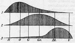 Toutefois les trois types de cône sont sensibles à quasiment toutes les fréquences du spectre visible. Mais c'est ensuite à partir du niveau de réponse des trois différents capteurs que le système visuel, dans la rétine, puis dans le cerveau, va restituer la couleur. C'est ce point que Helmholtz va prouver en 1861[2].